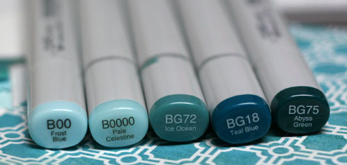 I layered all of the blocks onto patterned paper and colored the images with Copic Markers. I also added some machine stitching to add to the vintage effect.